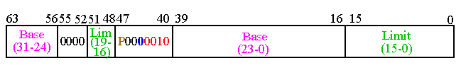 Bit 40-43: The Type field is extended to 4 bits (no Accessed bit). Type 2 (0010) indicates a LDT descriptor.