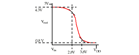 b) (10pts) Compute the low and high noise margins using the following transfer curve.